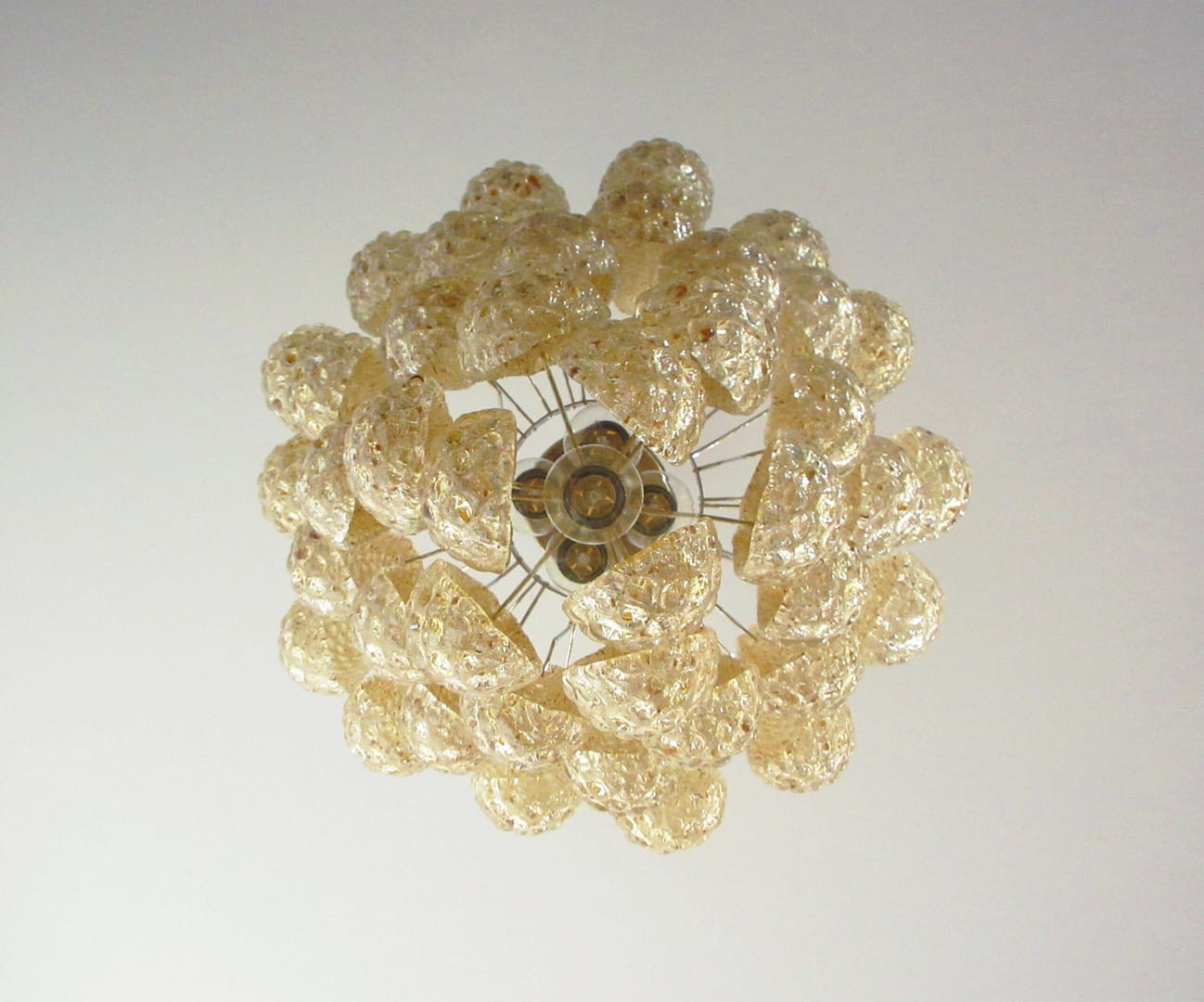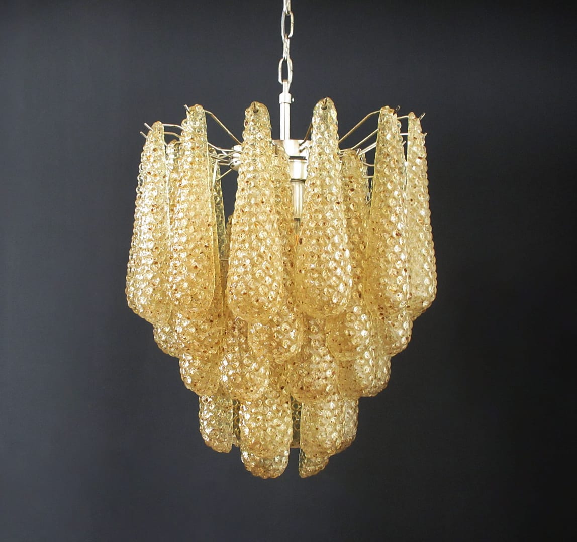 Italiensk ljuskrona från Murano gjord av 41 bärnstensfärgade glas i en kromram.