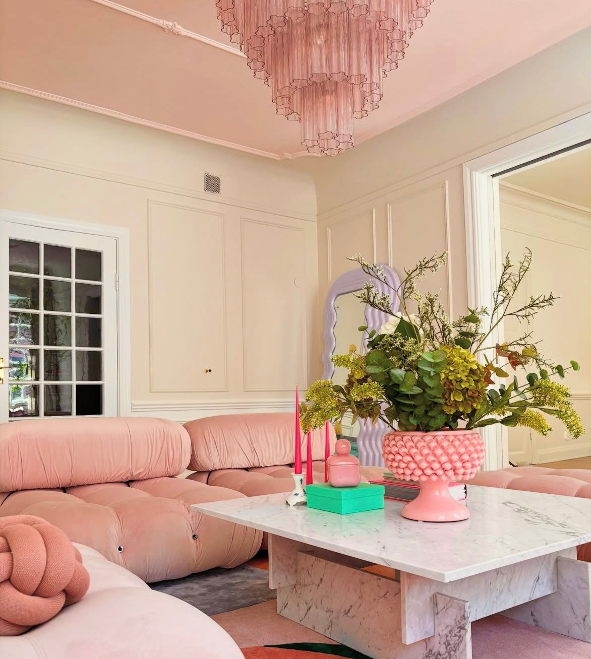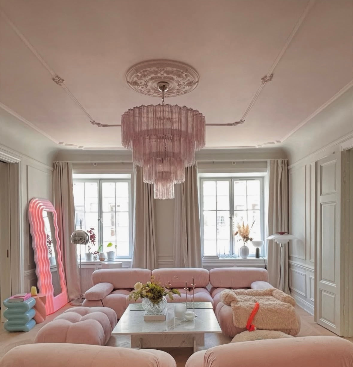 Murano takkrona Tubular Ø85 - 78 rosa glas